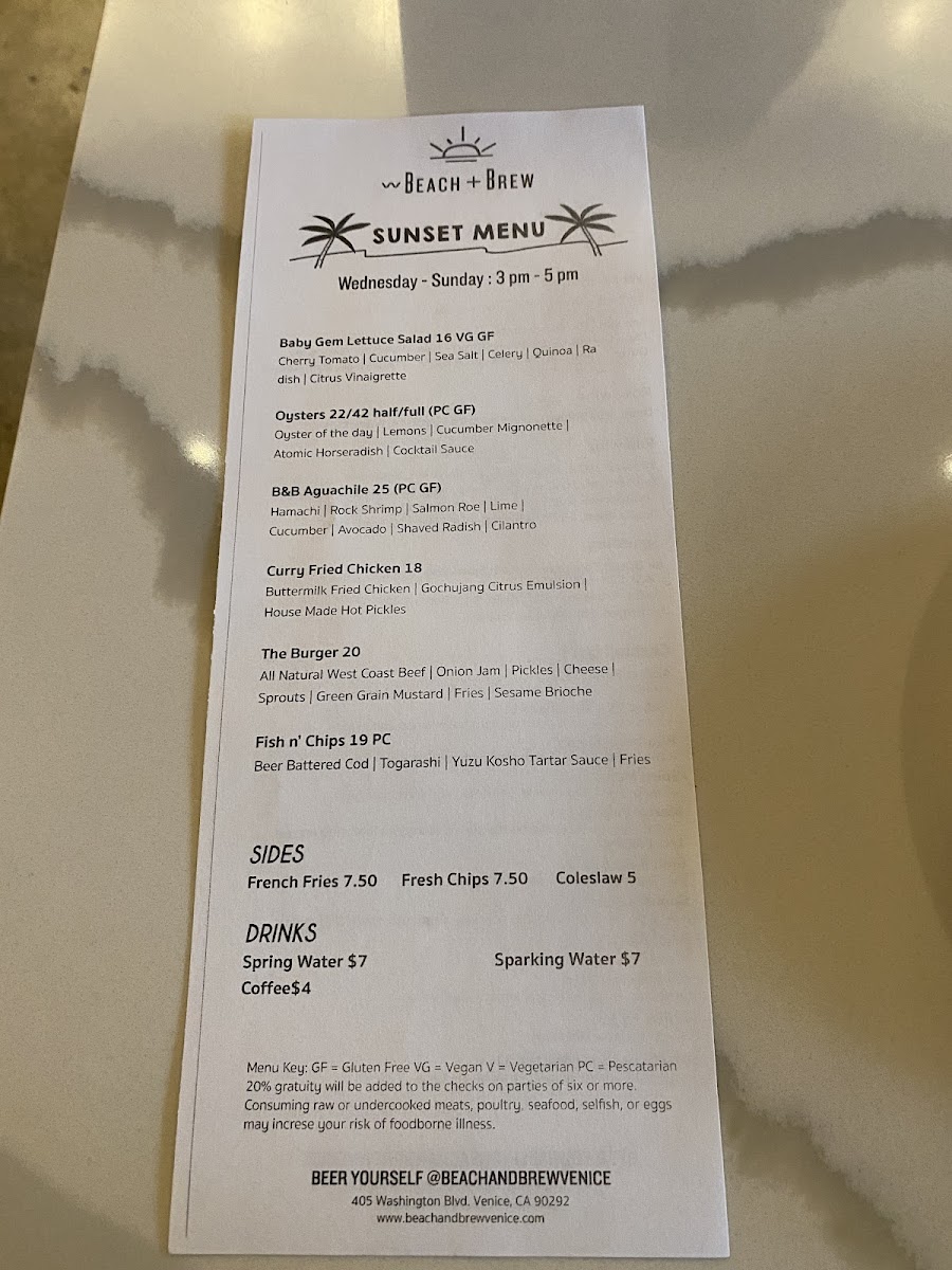 Welcome to Beach and Brew Venice, located at 405 Washington Blvd, where casual elegance meets culinary excellence. This beachside gem boasts an unparalleled selection of food and drink, making it a must-visit for locals and travelers alike.
